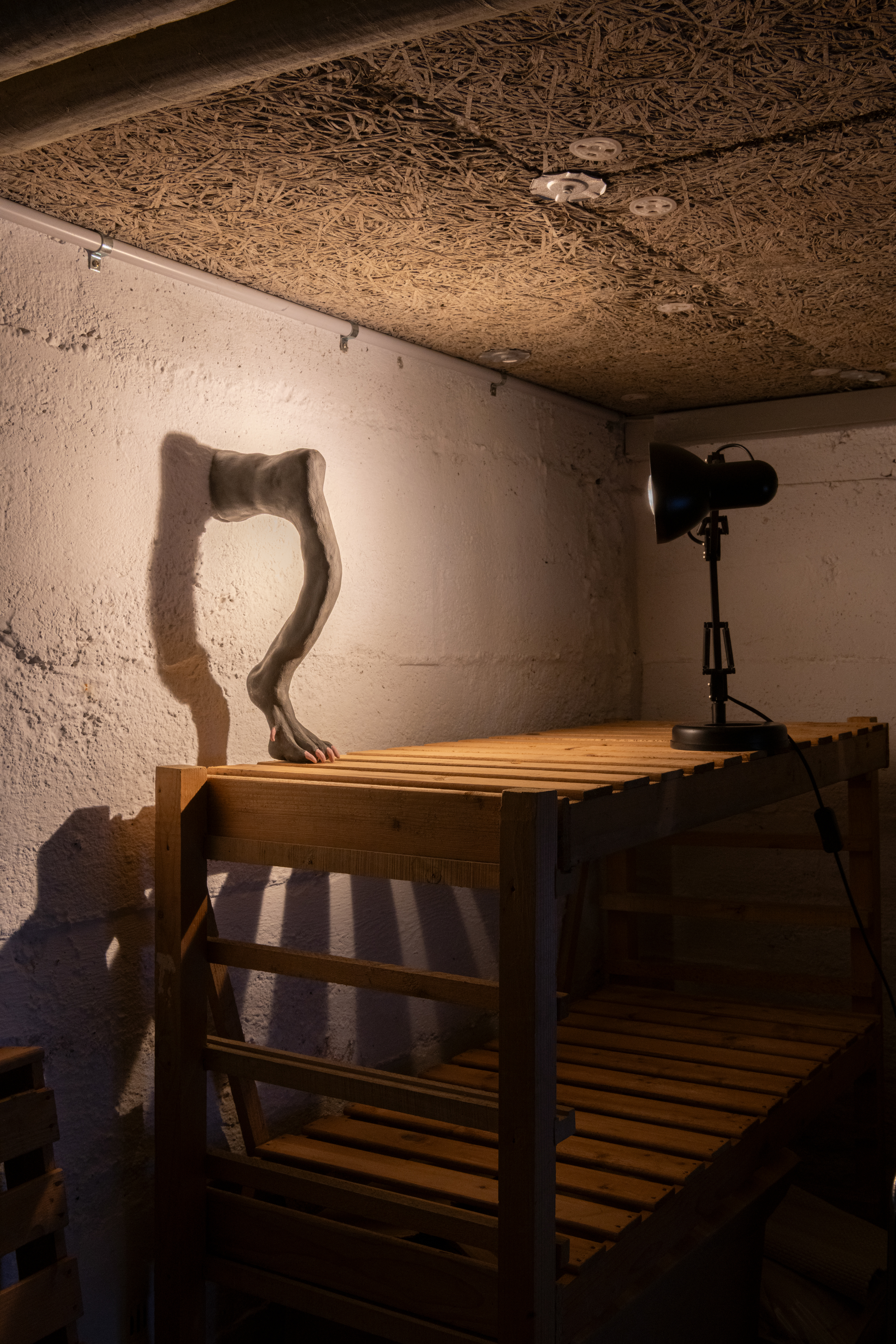 Enrique Lanz, first paw omen, 2026, Engobierte Keramik, Rohbrand, 41 x 7 x 15 cm