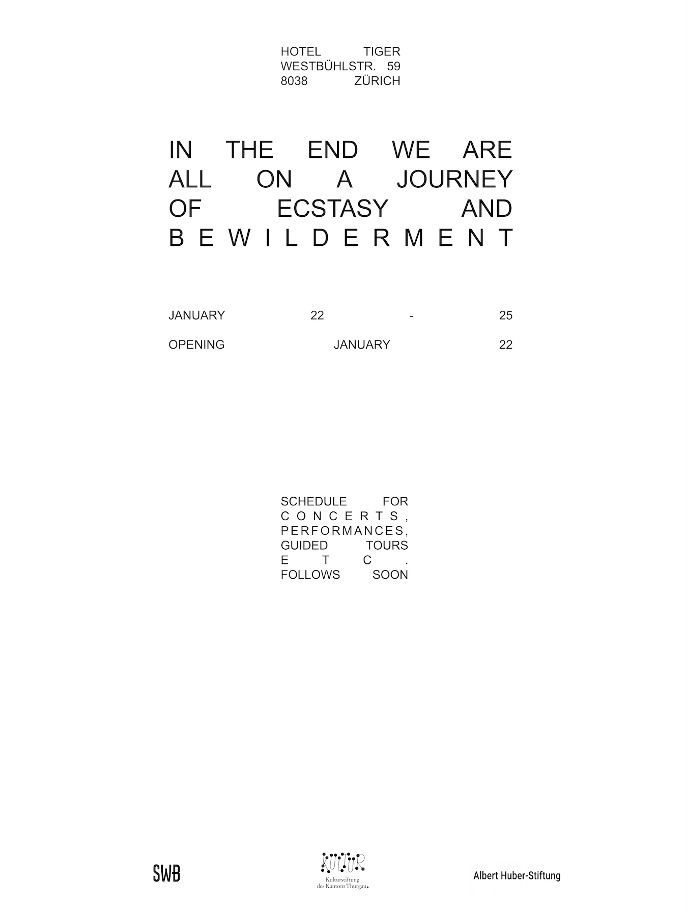 In the End We Are All On A Journey Of Ecstasy And Bewilderment, 22 - 25 Feb, 2026