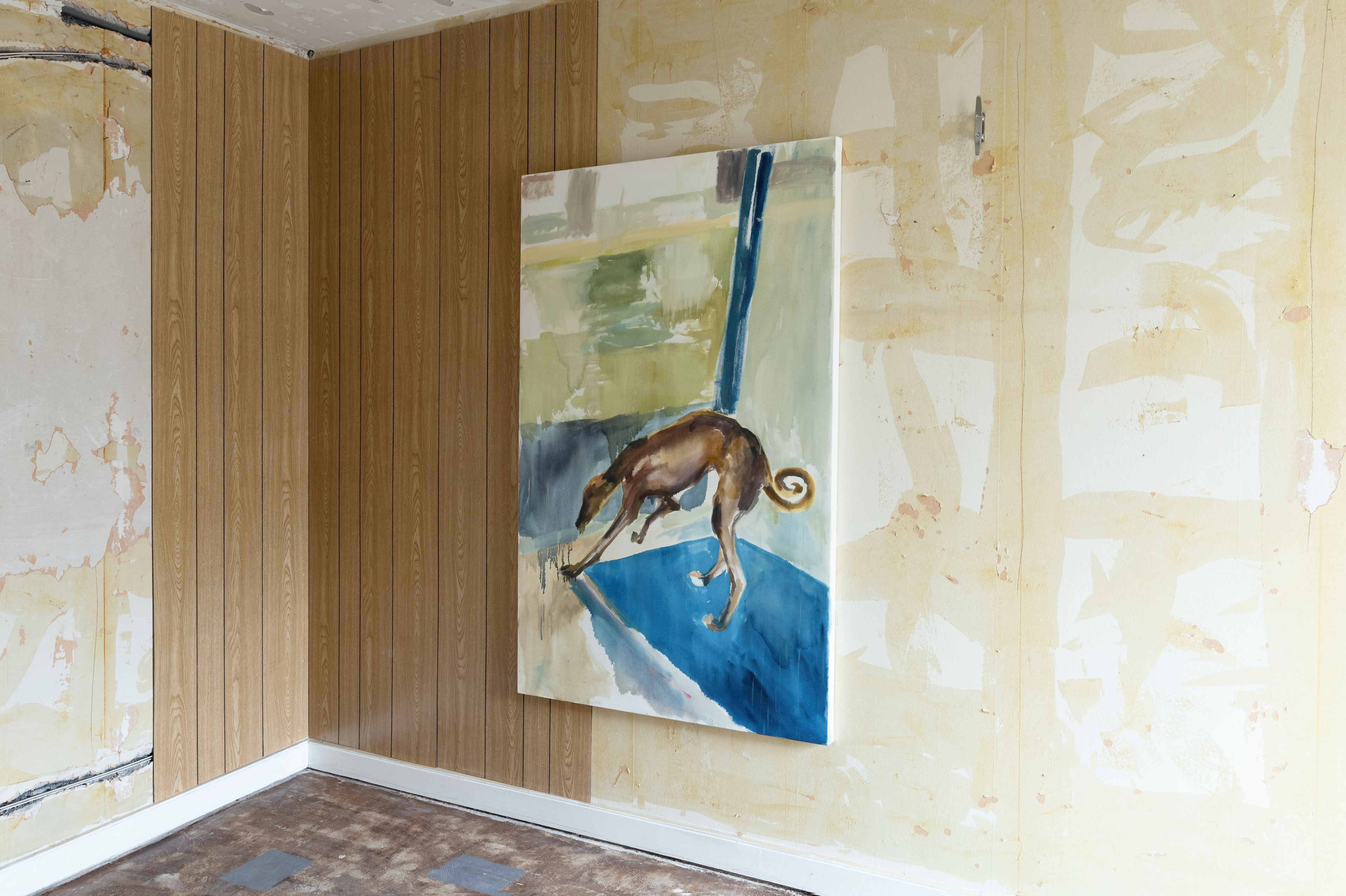 Anaïs Strübin, If I Were a Dog, 2020 - 2024, oil and chalk on cotton, 160 x 100 cm